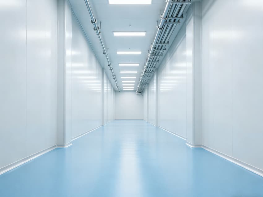 內(nèi)部按功能劃分為六大潔凈區(qū)域:核心潔凈生產(chǎn)區(qū)(淺藍(lán)色防滑防霉地面)預(yù)留開闊空間,滿足發(fā)酵罐、純化設(shè)備等后期安裝;頂部潔凈送風(fēng)區(qū)通過規(guī)整風(fēng)閥系統(tǒng),實(shí)現(xiàn)萬級(jí)潔凈度均勻送風(fēng);墻面過渡區(qū)采用圓弧轉(zhuǎn)角設(shè)計(jì),避免粉塵堆積;密閉觀察區(qū)設(shè)雙層鋼化觀察窗,兼顧生產(chǎn)監(jiān)控與無菌隔離;縱向設(shè)備預(yù)留區(qū)保留8米凈高,適配大型凍干設(shè)備動(dòng)線;輔助緩沖區(qū)銜接車間入口,搭配風(fēng)淋系統(tǒng),實(shí)現(xiàn)人員/物料潔凈過渡。整體空曠布局既保障潔凈操作空間,又滿足皖北生物制藥企業(yè)靈活擴(kuò)產(chǎn)需求,為本地藥企提供合規(guī)、高效的生產(chǎn)載體。