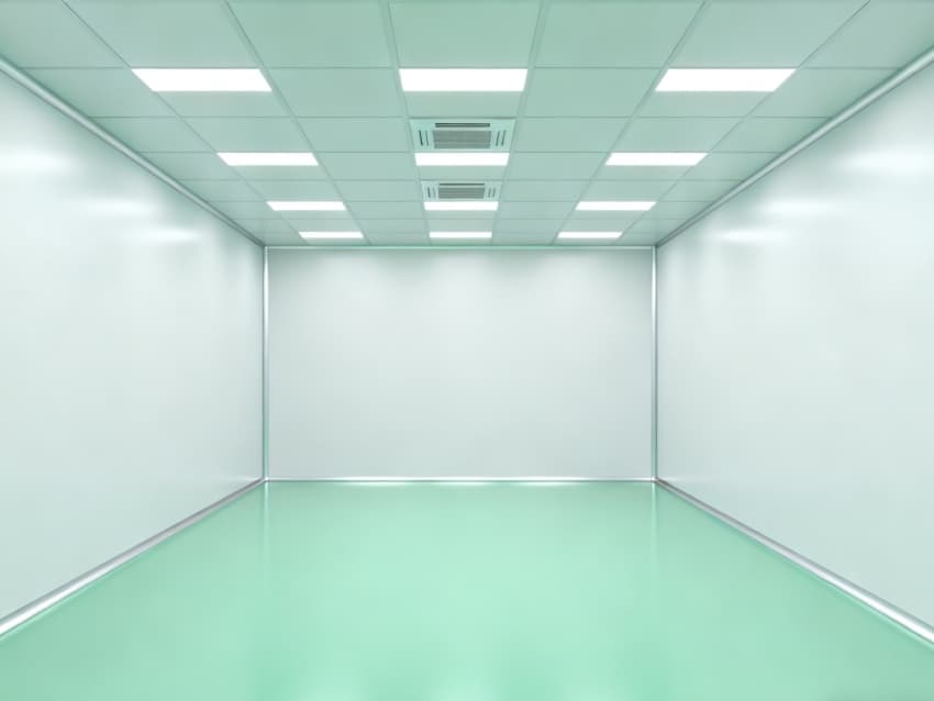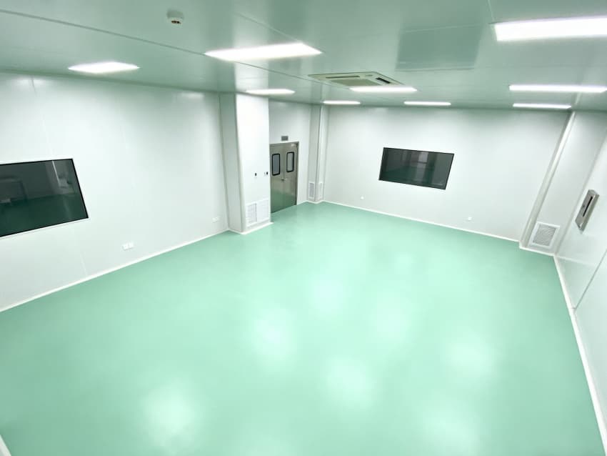 設計在環境防護上針對性突出:地面采用淺綠色防靜電環氧材質,表面電阻值控制在10^6-10^9Ω,有效規避靜電對電子零件的損傷;四周白色防塵墻壁經啞光處理,減少光線反射干擾,配合頂部高效空氣過濾器(HEPA),可穩定維持千級潔凈度,隔絕粉塵、微粒對精密組裝的影響。?