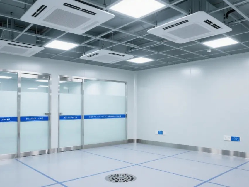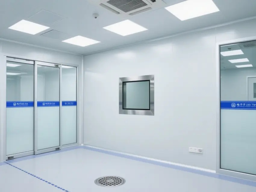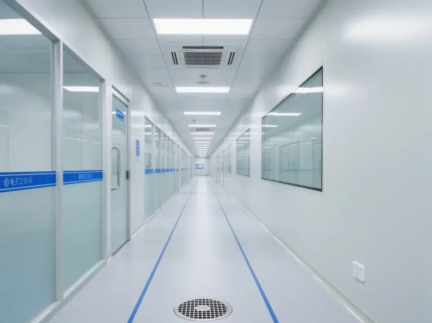 車間的天花板上安裝了多個方形的照明燈,提供充足的光線,同時還有通風設(shè)備,確保空氣流通,保持車間內(nèi)的空氣潔凈度達到萬級標準。墻壁上有一些玻璃窗戶和門,便于觀察內(nèi)部情況。