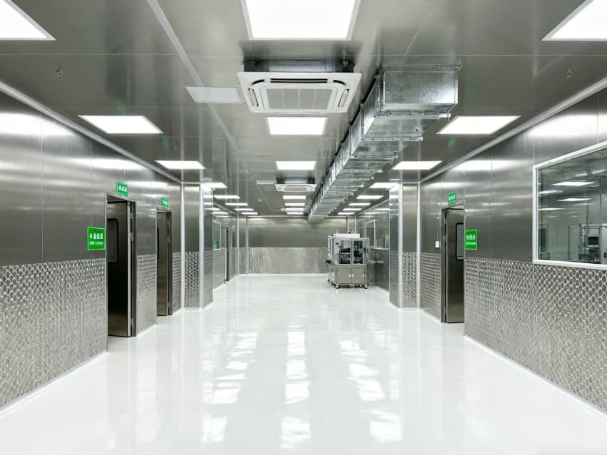 車間嚴格執行國際認可的萬級潔凈標準(ISO8級),即每立方米空氣中≥0.5μm的微粒數嚴格控制在≤352,000個。為實現這一嚴苛標準,車間構建了初效-中效-高效三級遞進式空氣過濾系統:初效過濾器攔截大顆?;覊m與毛發,中效過濾器進一步過濾粒徑較大的懸浮顆粒,末端高效過濾器(HEPA)對0.3μm以上微粒的過濾效率高達99.97%。配合頂送底回的垂直層流氣流設計,形成穩定單向氣流,有效抑制渦流產生,每小時實現22-26次的空氣徹底置換,確保潔凈空氣持續循環。?